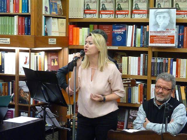 Το βιβλιοπωλείο ΣΥΓΧΡΟΝΗ ΕΚΦΡΑΣΗ, το ΤΡΟΦΩΝΙΟ ΩΔΕΙΟ και ΟΙ ΦΙΛΟΙ ΤΟΥΣ συνεργάσθηκαν για τέταρτη συνεχόμενη χρονιά και γιόρτασαν την παγκόσμια ημέρα ποίησης με εκδήλωση αφιερωμένη στον Μάνο Ελευθερίου. Ακολουθεί η ερμηνεία της Πέπης Θεοχάρη στα τραγούδια του - με ερασιτεχνική λήψη - όπως σας είχαμε υποσχεθεί.
